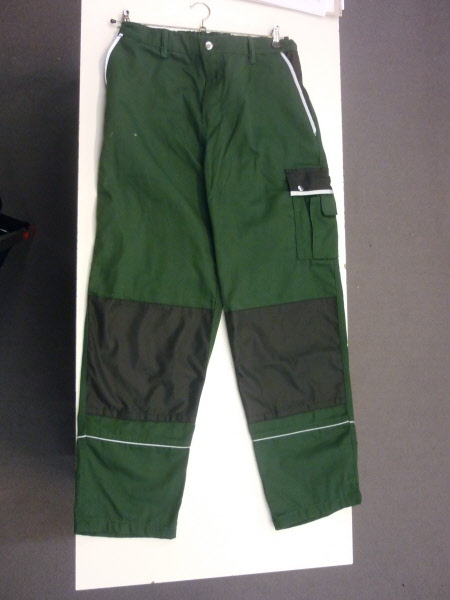 60% Baumwolle, 40% Polyester, Gummizug im Rücken, Bundfalten, breite Gürtelschlaufen für Gürtel bis ca. 5 cm Breite, 2 Seitentaschen, 1 verschließbare Gesäßtasche von innen verstärkt, 2 Schenkeltaschen, davon 1 mit aufgesetzter Handy-Tasche und 1 mit integrierter Zollstocktasche, Farben: dunkelblau, königsblau,weiß, schwarz, sand, dunkelgrau und rot
